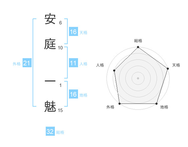 安庭 一魅さんの総格は32画の5点!