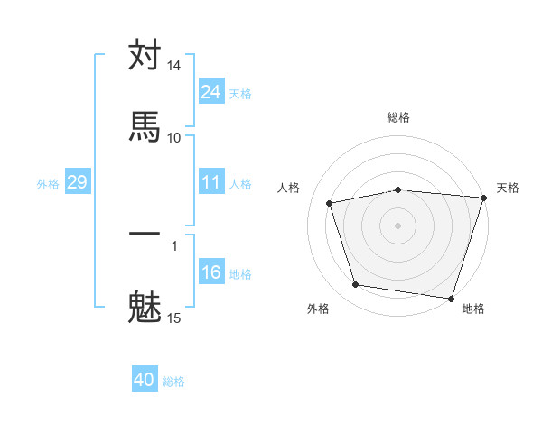 対馬 一魅さんの天格は24画の5点!