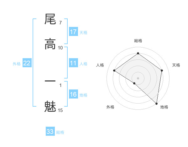 尾高 一魅さんを姓名の画数から五運を鑑定