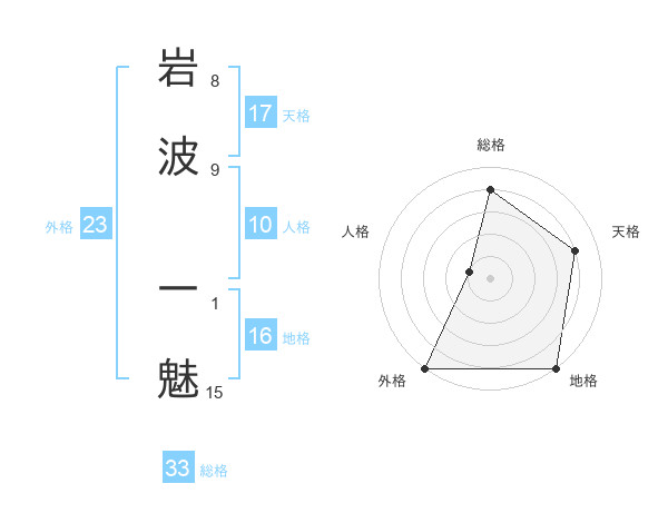 岩波 一魅さんの総格は33画の4点!