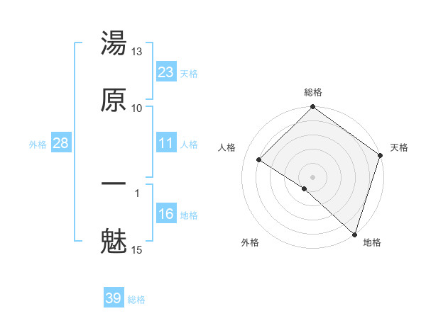 湯原 一魅さんを姓名の画数から五運を鑑定