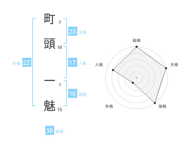 町頭 一魅さんの天格は23画の5点!