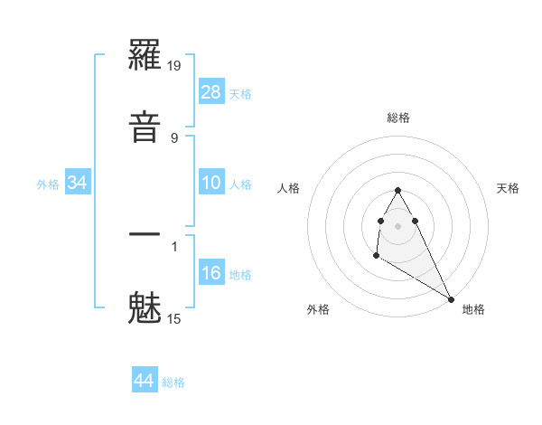 羅音 一魅さんの総格は44画の2点!
