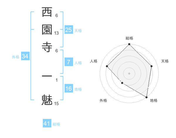西園寺 一魅さんの総格は41画の5点!