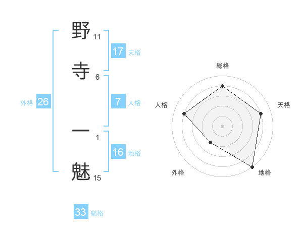 野寺 一魅さんを姓名の画数から五運を鑑定
