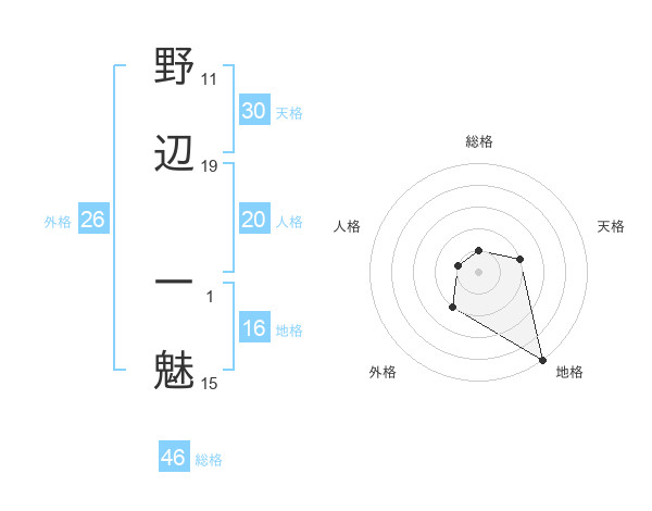 野辺 一魅さんを姓名の画数から五運を鑑定