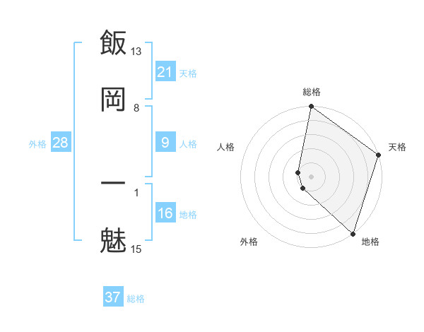 飯岡 一魅さんの総格は37画の5点!