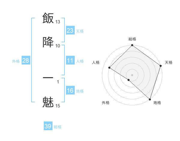 飯降 一魅さんの地格は16画の5点!