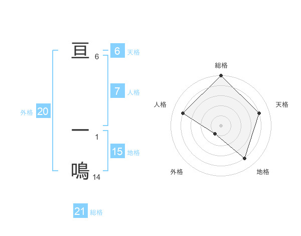 亘 一鳴さんの総格は21画の5点!