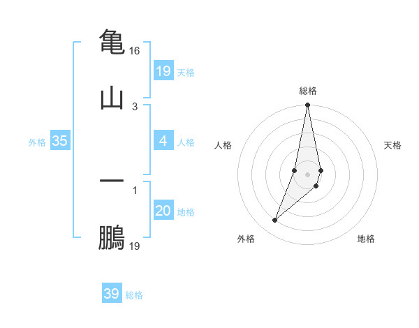 亀山 一鵬さんを姓名の画数から五運を鑑定