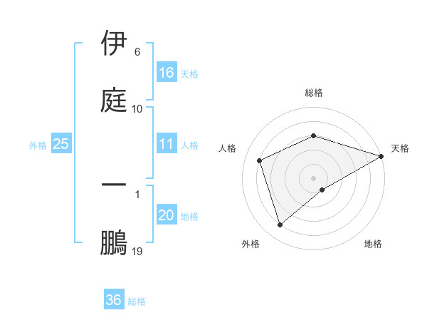 伊庭 一鵬さんの天格は16画の5点!