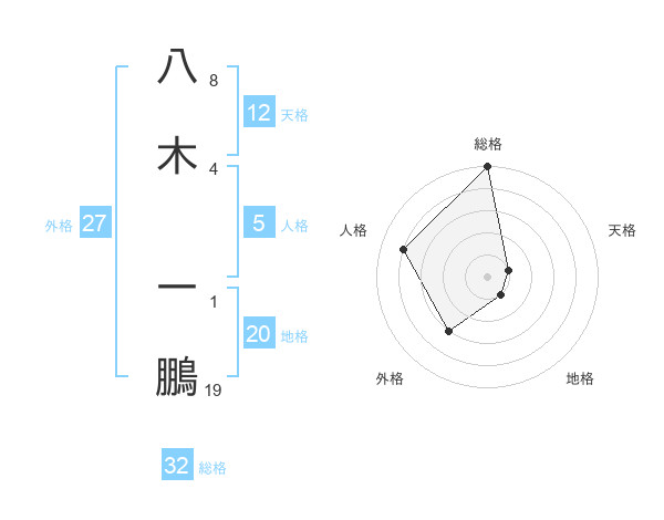 八木 一鵬さんを姓名の画数から五運を鑑定