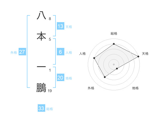 八本 一鵬さんの天格は13画の5点!