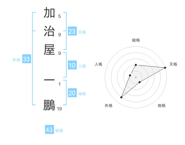 加治屋 一鵬さんを姓名の画数から五運を鑑定