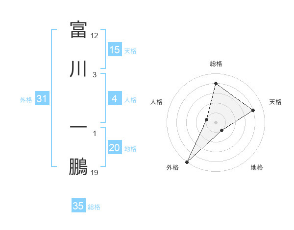 富川 一鵬さんの総格は35画の4点!
