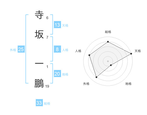 寺坂 一鵬さんを姓名の画数から五運を鑑定