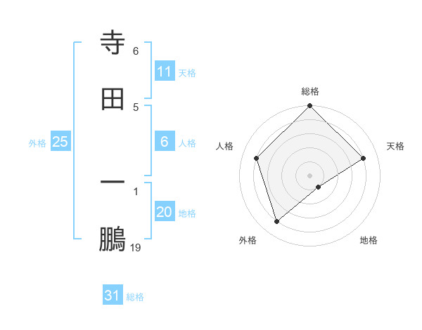 寺田 一鵬さんの総格は31画の5点!