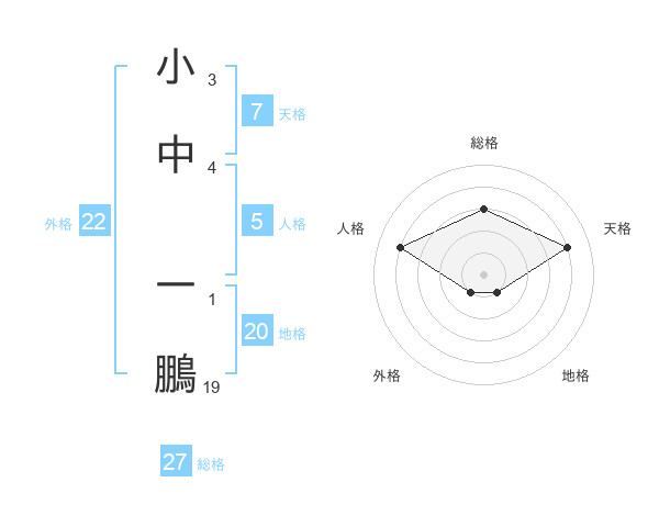 小中 一鵬さんの総格は27画の3点!