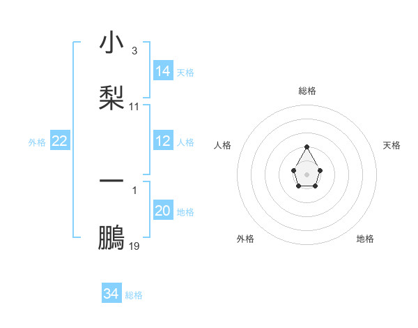 小梨 一鵬さんの総格は34画の2点!