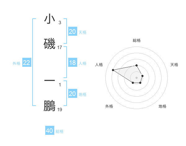 小磯 一鵬さんの天格は20画の1点!