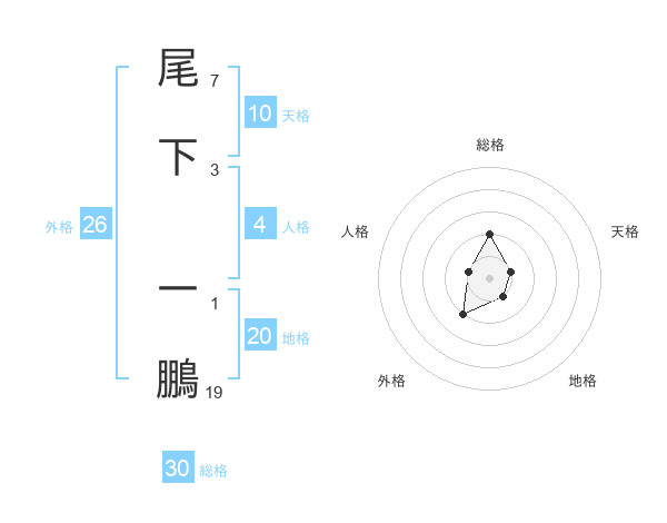 尾下 一鵬さんの地格は20画の1点!