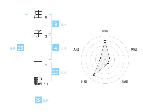 庄子 一鵬さんを姓名の画数から五運を鑑定