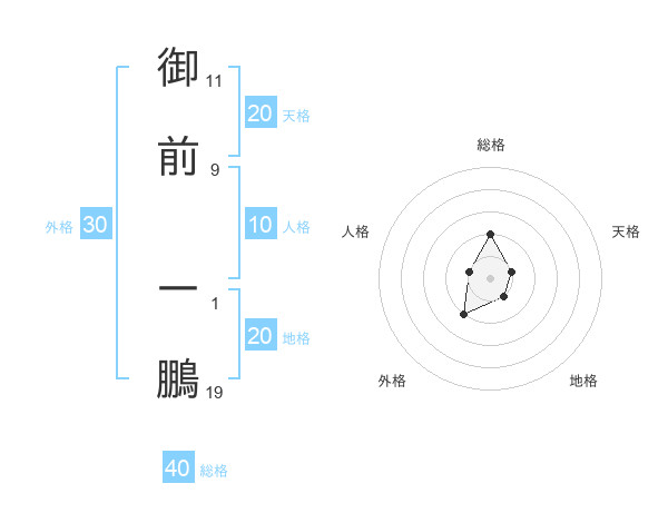 御前 一鵬さんを姓名の画数から五運を鑑定