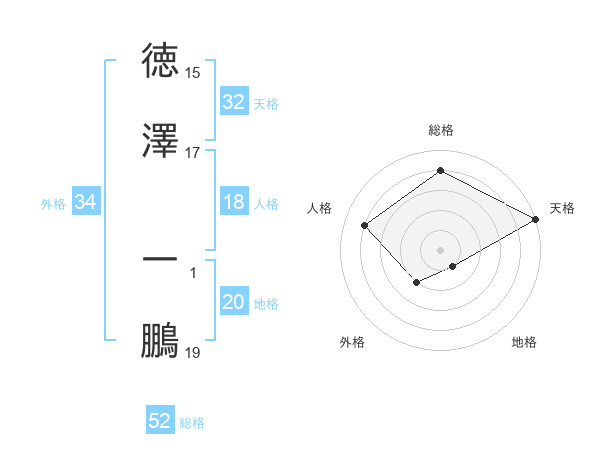 徳澤 一鵬さんを姓名の画数から五運を鑑定