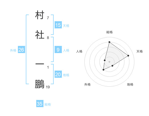 村社 一鵬さんを姓名の画数から五運を鑑定