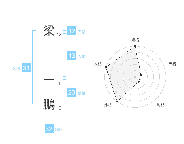 梁 一鵬さんを姓名の画数から五運を鑑定
