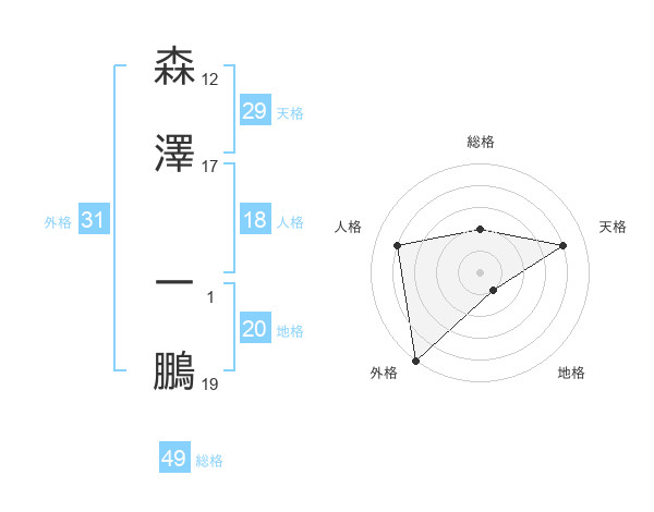 森澤 一鵬さんの外格は31画の5点!