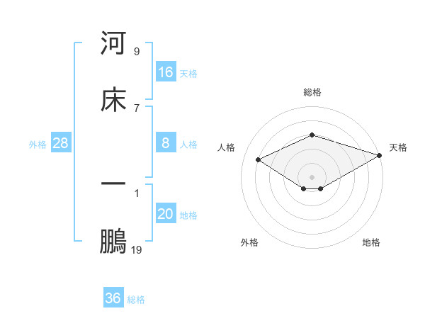 河床 一鵬さんを姓名の画数から五運を鑑定