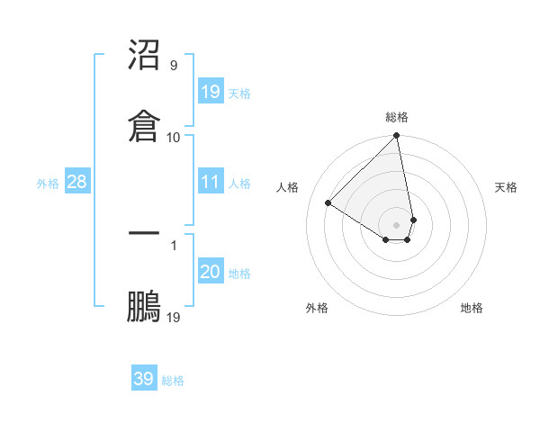 沼倉 一鵬さんを姓名の画数から五運を鑑定