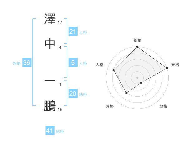 澤中 一鵬さんを姓名の画数から五運を鑑定