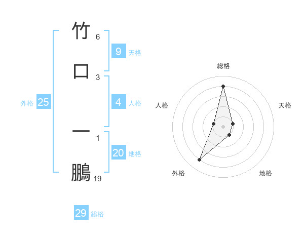 竹口 一鵬さんの総格は29画の4点!