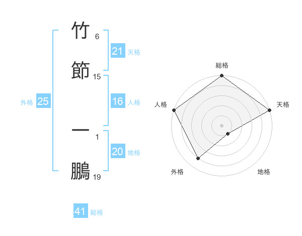竹節 一鵬さんを姓名の画数から五運を鑑定