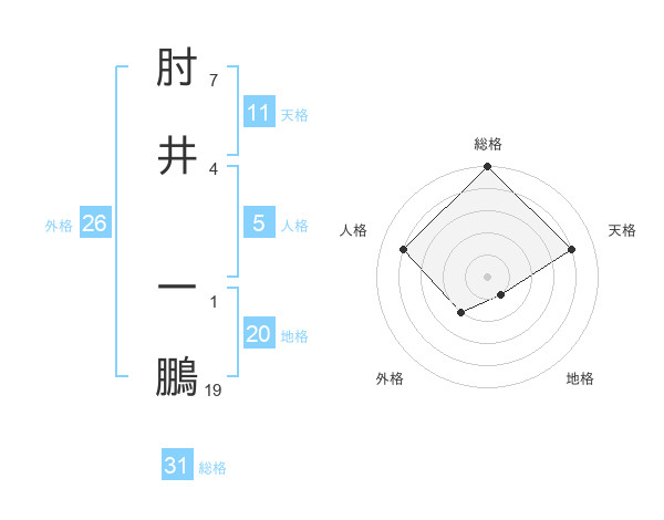 肘井 一鵬さんの総格は31画の5点!