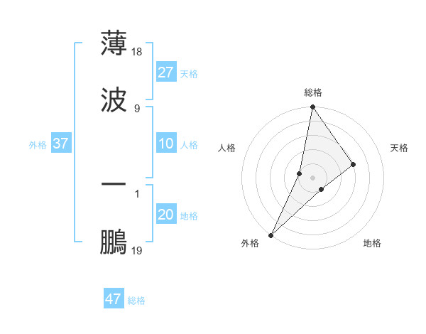 薄波 一鵬さんを姓名の画数から五運を鑑定
