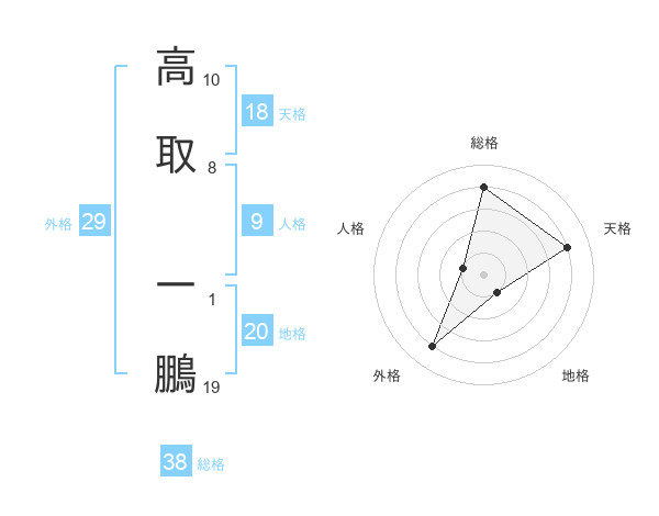 高取 一鵬さんの総格は38画の4点!