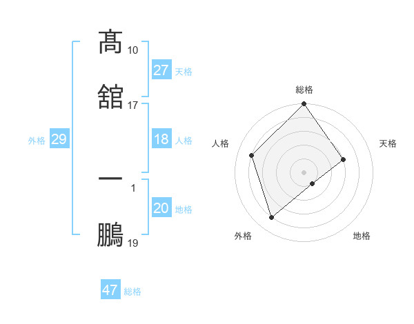 髙舘 一鵬さんを姓名の画数から五運を鑑定