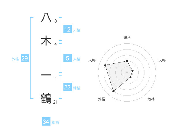 八木 一鶴さんの総格は34画の2点!