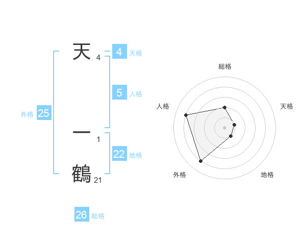 天 一鶴さんの総格は26画の2点!