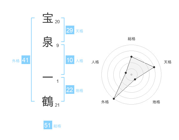 宝泉 一鶴さんの総格は51画の3点!