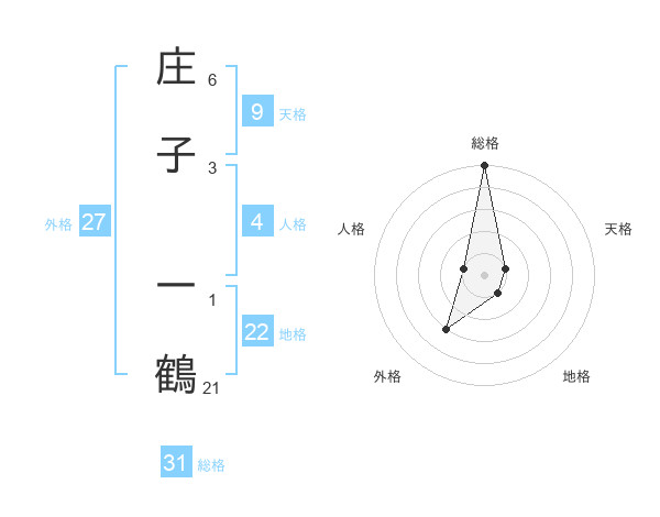 庄子 一鶴さんを姓名の画数から五運を鑑定