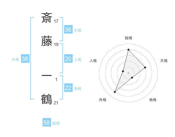 斎藤 一鶴さんを姓名の画数から五運を鑑定