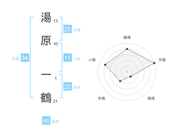 湯原 一鶴さんを姓名の画数から五運を鑑定