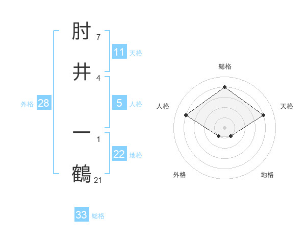 肘井 一鶴さんの総格は33画の4点!
