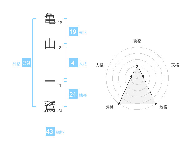 亀山 一鷲さんを姓名の画数から五運を鑑定