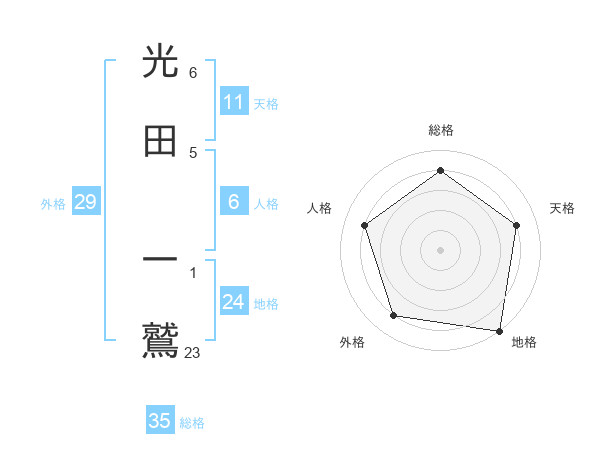 光田 一鷲さんを姓名の画数から五運を鑑定
