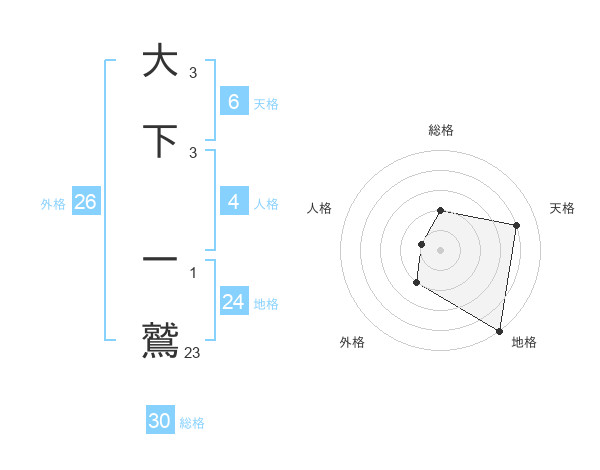 大下 一鷲さんを姓名の画数から五運を鑑定